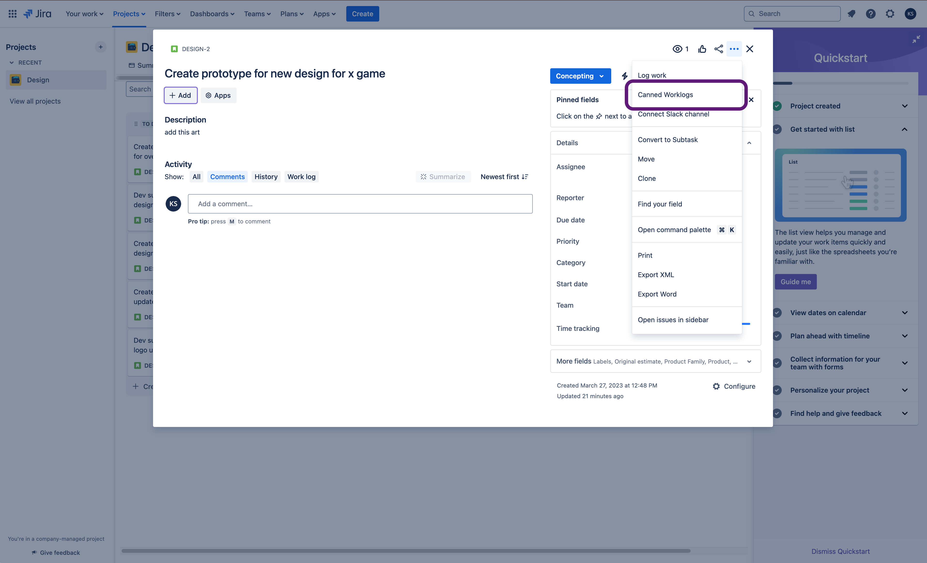 1. Install Canned Worklogs from the Atlassian Marketplace.