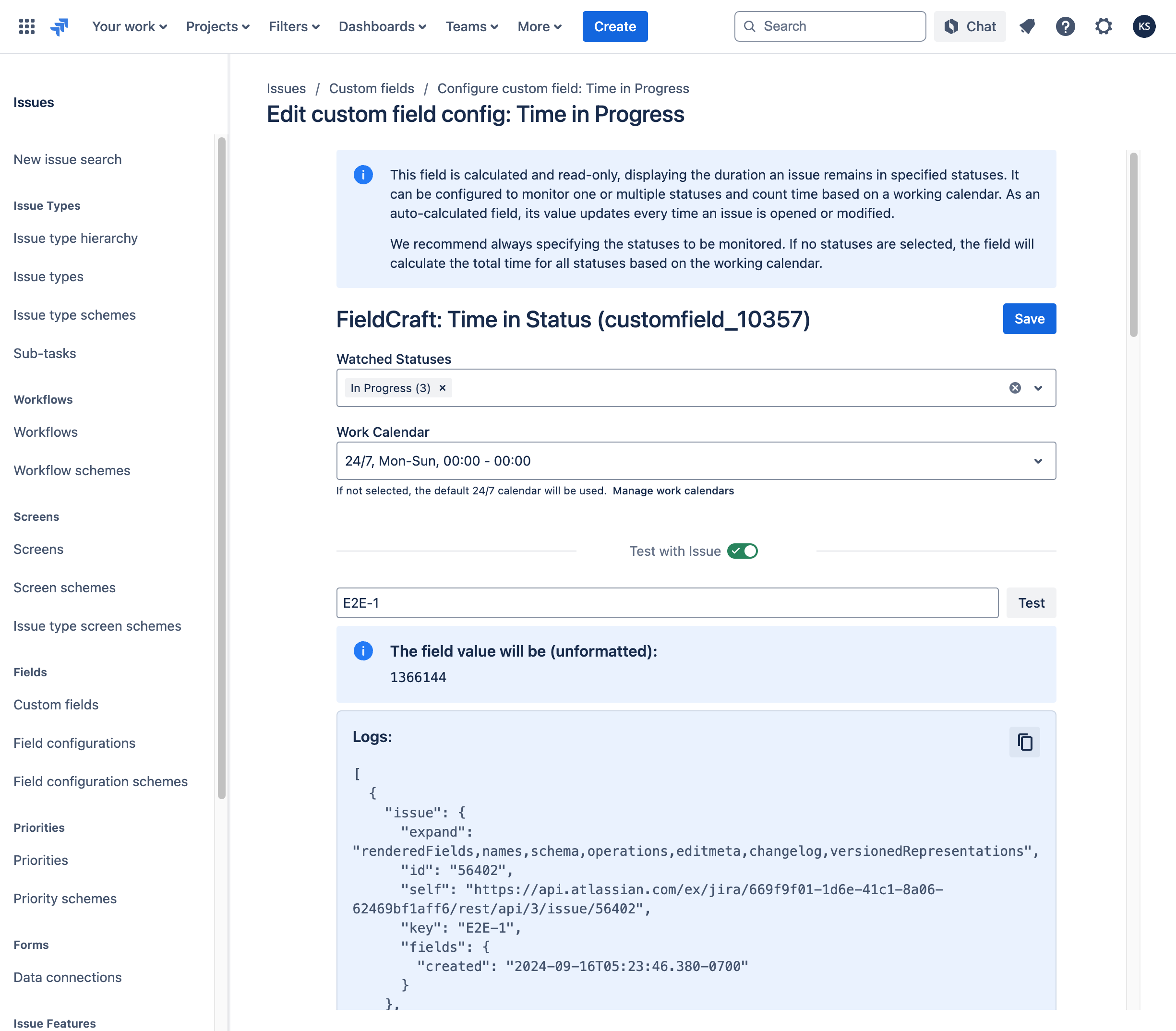 This guide will help you review the calculation details for custom fields like "Time in Status" and investigate any discrepancies between the calculated time and your expectations.