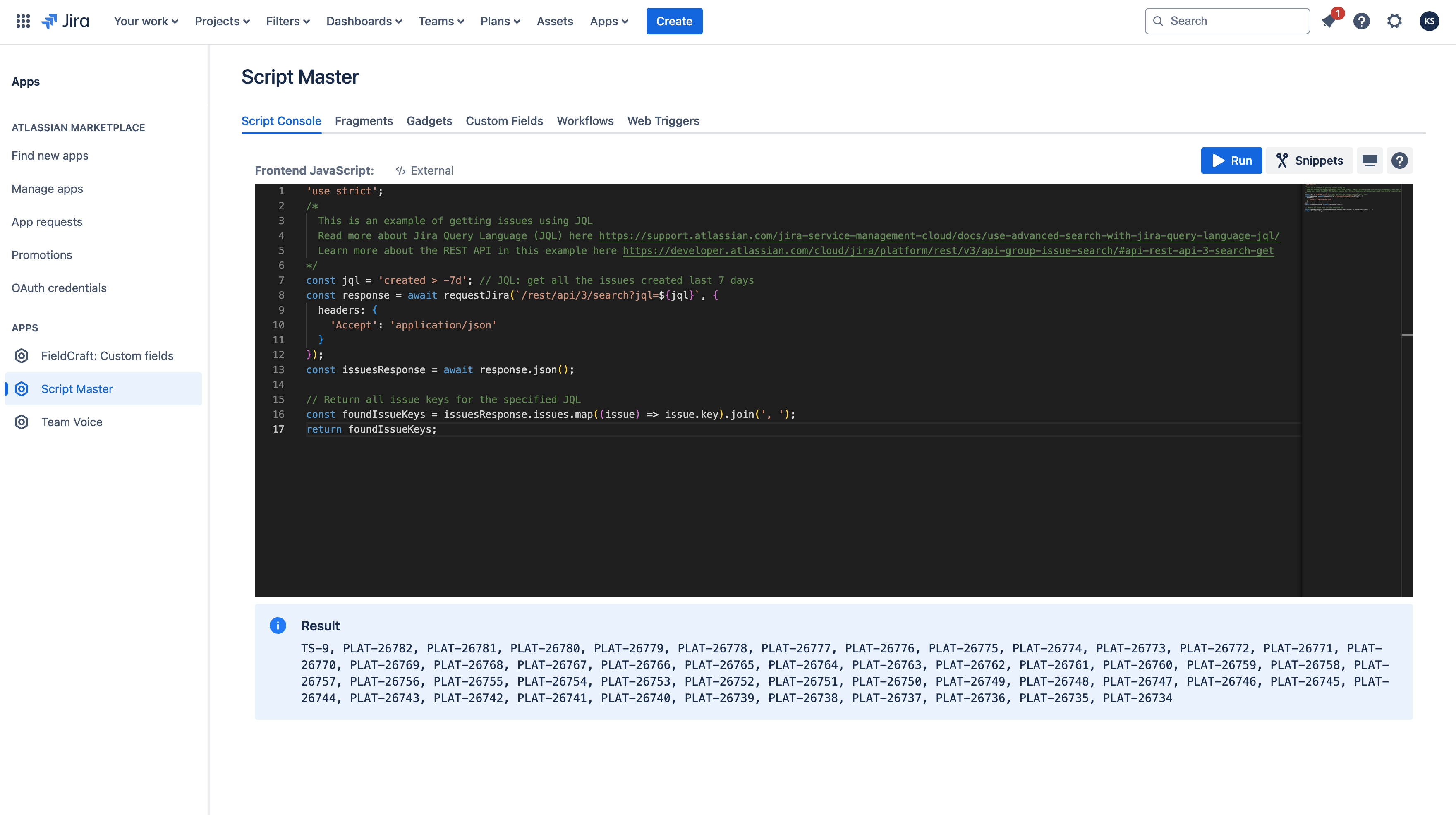 - Bulk Clone Issues. The script for the Scripted Console in Jira clones up issues based on a specified JQL.
