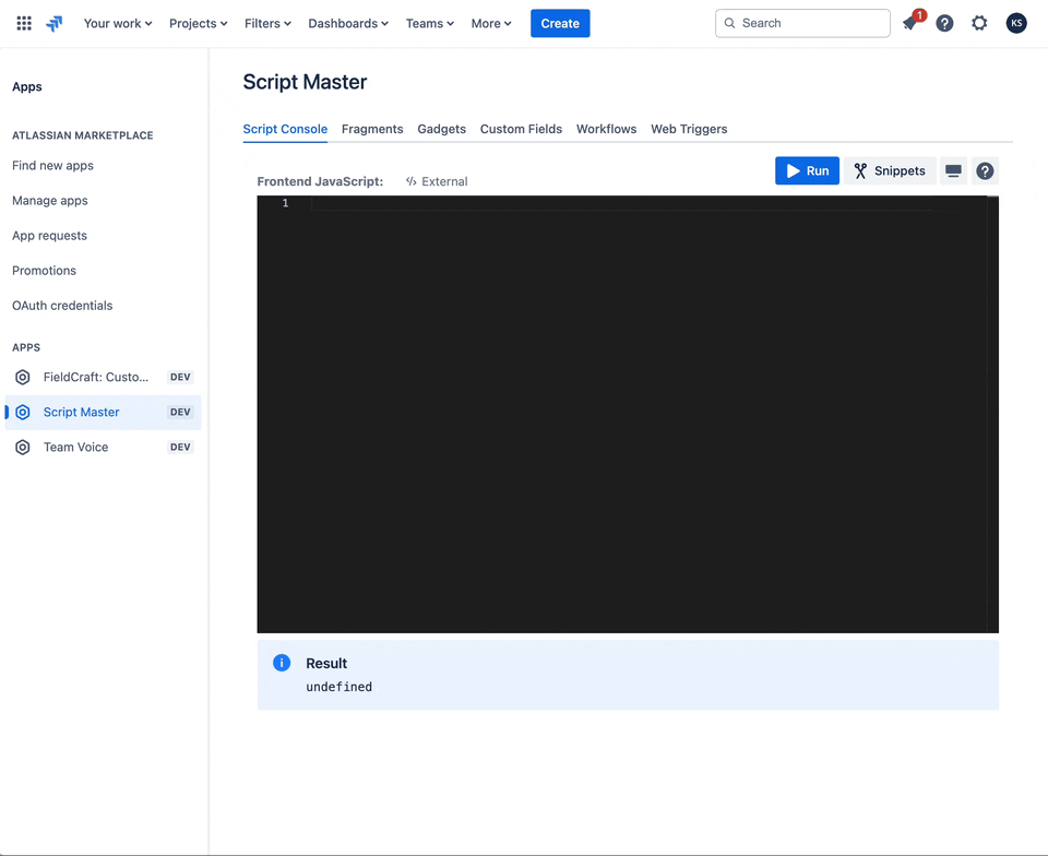 The Script Console is a tool for executing ad hoc scripts and experimenting with the Jira or Confluence REST API and Forge-compatible scripts. You can input scripts directly into the Script Console editor and run them with your current permissions. It's useful for displaying information, performing one-off cleanup tasks, and bulk updating various Jira or Confluence elements. For instance, as an admin, you can quickly change the ownership of multiple filters or dashboards in Jira and spaces in Confluence in bulk, rather than manually searching for and updating the owner of each one individually.