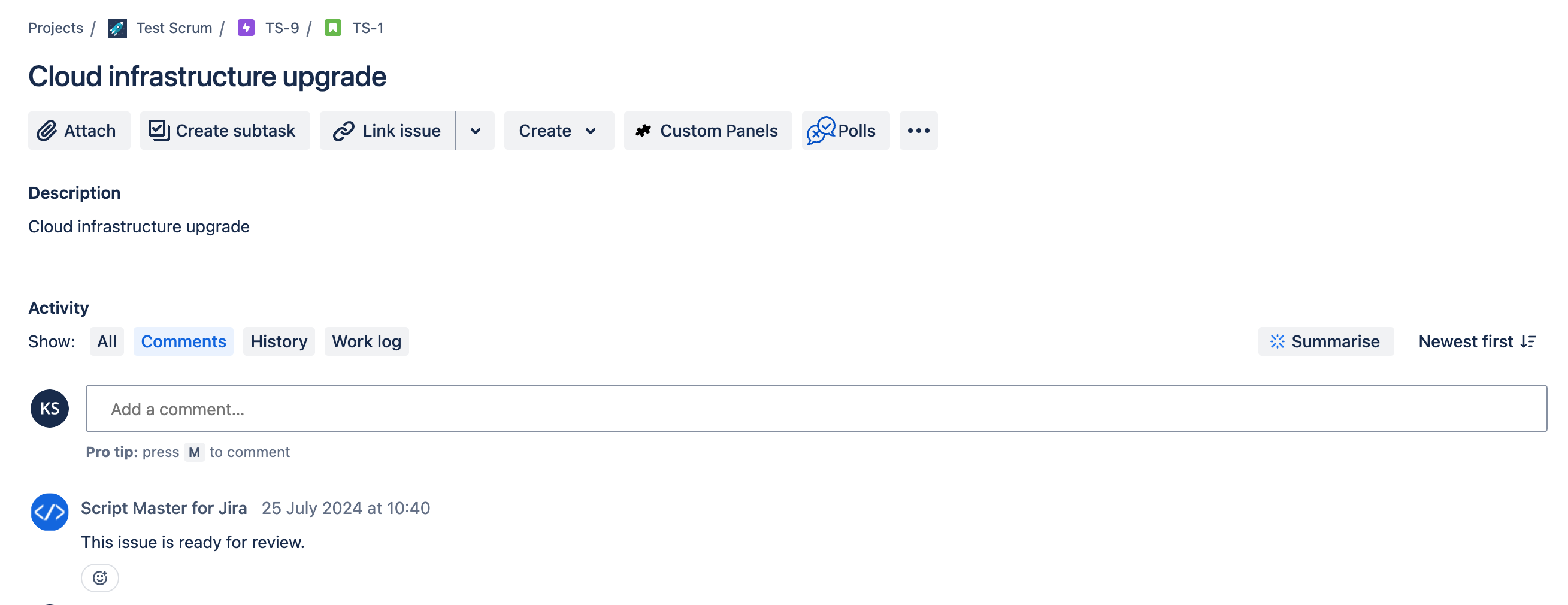 Let's create a post-function that adds a comment to an issue when it transitions to a specific status. For example, when tasks move to the review status, automatically add a predefined comment to notify reviewers that they are ready for review or approval.